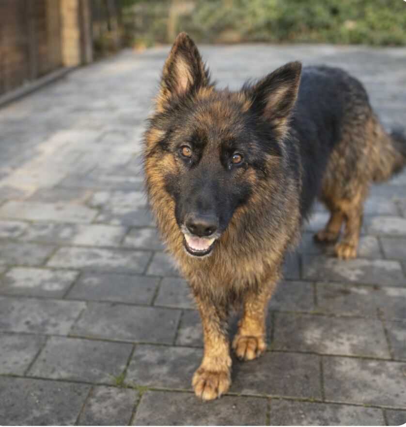 Pies jest typowym owczarkiem niemieckim – inteligentny, wierny i oddany opiekunowi.